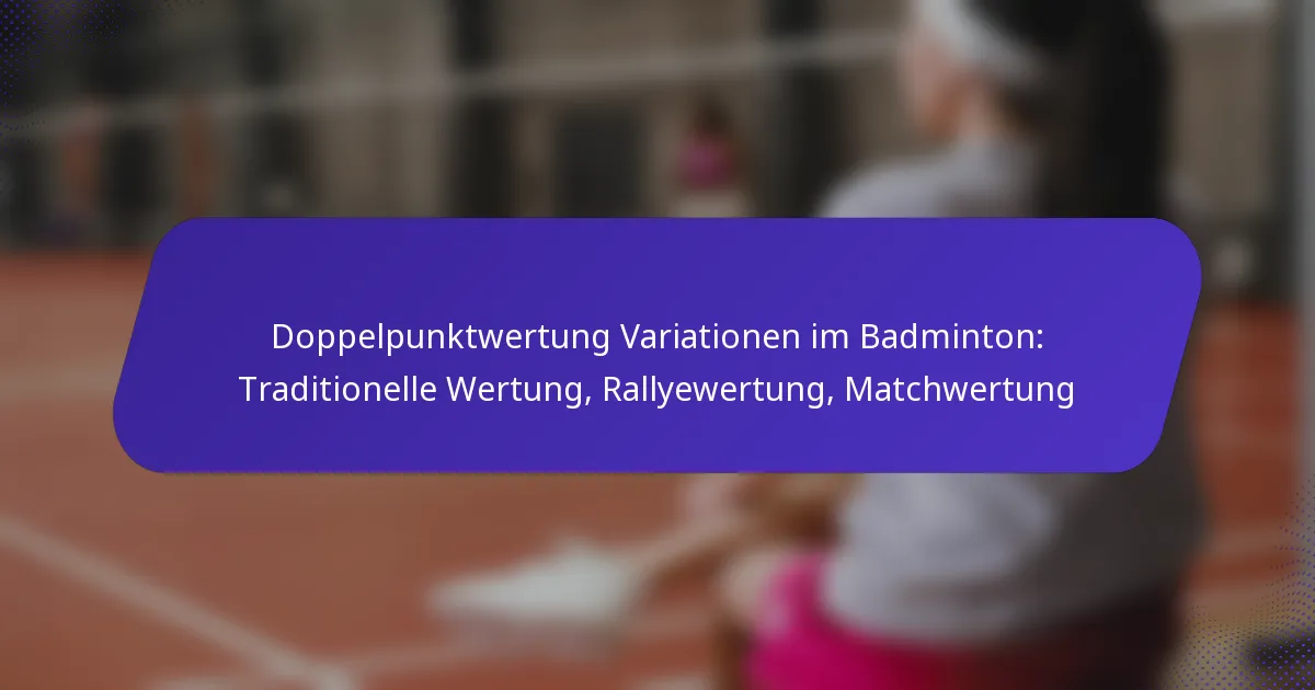 Doppels badminton bietet mehrere Punktesystemvariationen, darunter das traditionelle Punktesystem, das Rally-Punktesystem und das Match-Punktesystem, die jeweils eigene Regeln haben, die das Spiel und die Strategie prägen. Das traditionelle Punktesystem erlaubt nur der aufschlagenden Seite, Punkte zu erzielen, während das Rally-Punktesystem beiden Teams ermöglicht, bei jedem Aufschlag zu punkten, was ein schnelleres Spiel fördert. Das Verständnis dieser Punktesysteme ist entscheidend für Spieler, um ihre Strategien anzupassen und ihre Leistung auf dem Platz zu verbessern.